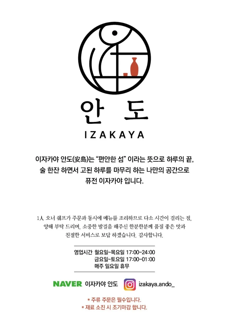 소중한 자리에서 완벽한 요리와 분위기를 제공할 이자카야 안도를 추천드립니다.