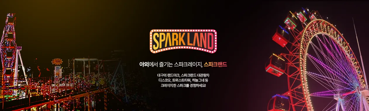 스파크랜드는 대구의 대표적인 놀이공원으로, 특히 젊은 세대에게 큰 인기를 끌고 있습니다. 다양한 놀이기구와 편의시설이 마련되어 있어 친구나 가족, 연인과 함께하기 좋은 곳입니다.