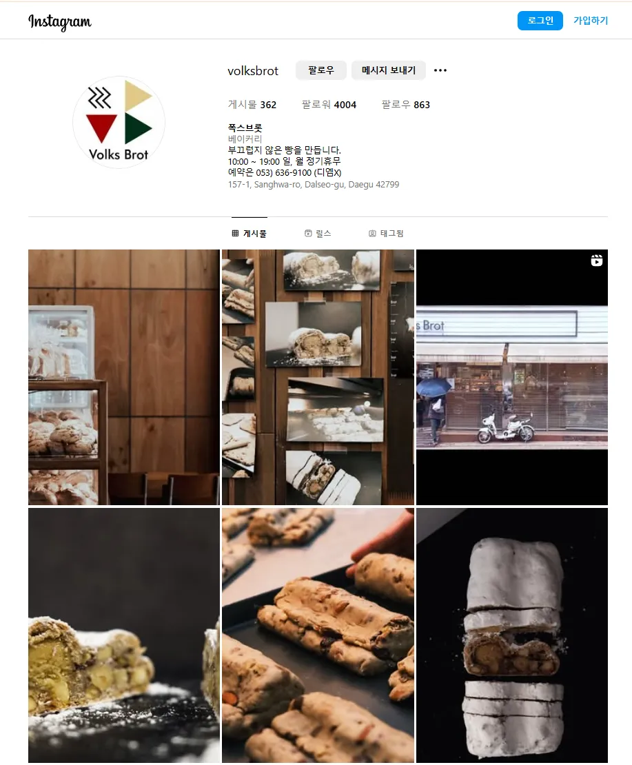- 3) 폭스브롯 : 대구 달서구에 위치한 독일식 빵집으로, 촉촉한 ‘당근케이크’와 ‘로겐브로트’가 유명하며, 09:00~20:00에 방문할 수 있습니다.