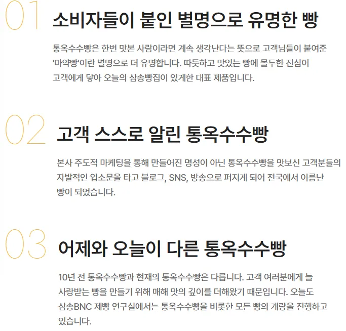 - 1) 삼송빵집 : 대구 중구에 위치하고, 통옥수수가 들어간 달콤 짭짤한 ‘마약옥수수빵’이 대표 메뉴로, 매일 08:00~21:00 운영합니다.