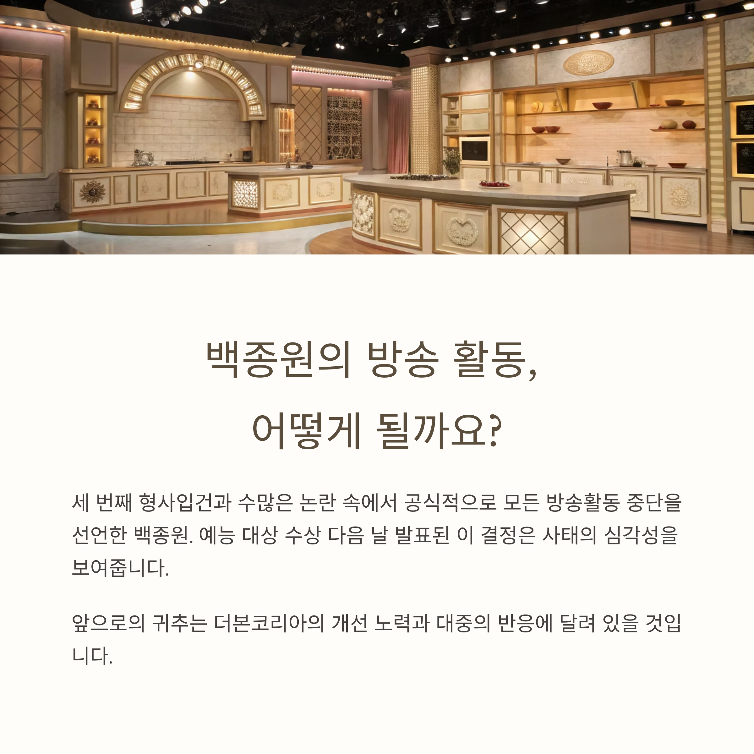 하루 뒤 백종원 방송 중단 선언으로 충격.