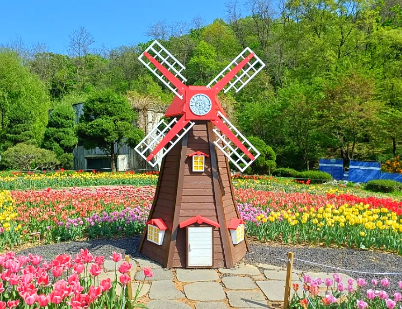 넓게 펼쳐진 튤립밭은 축제의 하이라이트입니다. 붉은색, 노란색, 분홍색 등 모든 색상이 조화를 이루며 형언할 수 없이 아름다운 풍경을 자랑합니다. 멋진 봄꽃들과 함께 인생샷을 남길 최고의 장소죠.