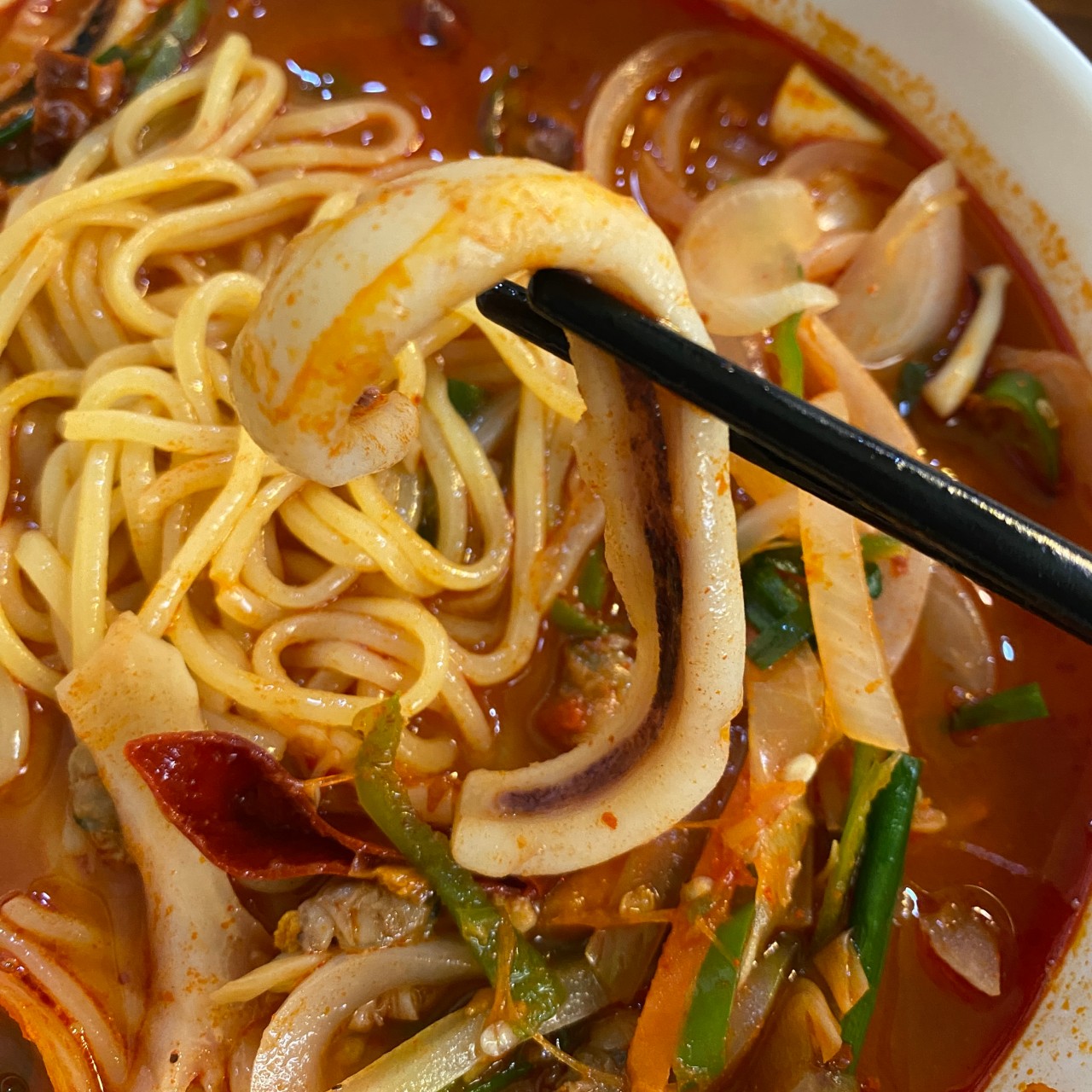 고추짬뽕의 얼큰한 국물과 해산물의 조화