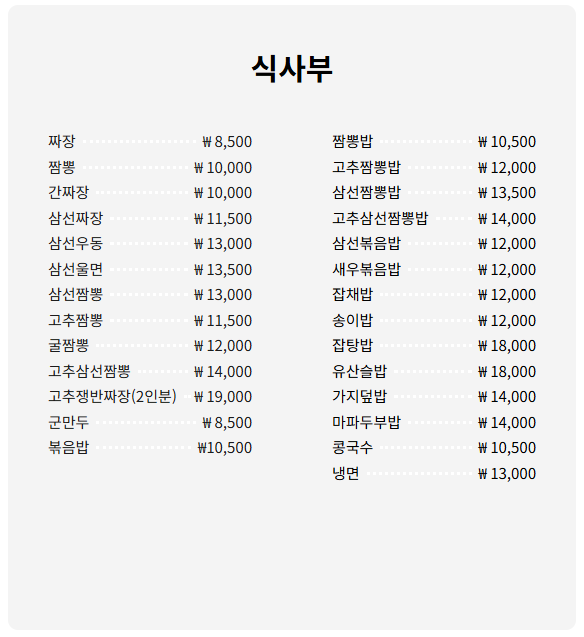 - 브레이크 타임: 평일 15:30 ~ 17:00