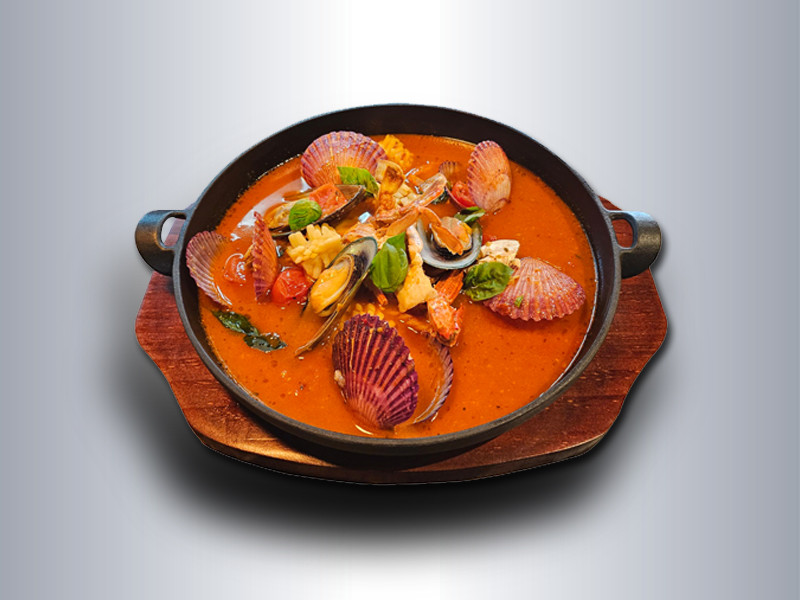 - 신선한 해산물과 토마토 베이스의 스튜로, 스파게티 면 추가 가능