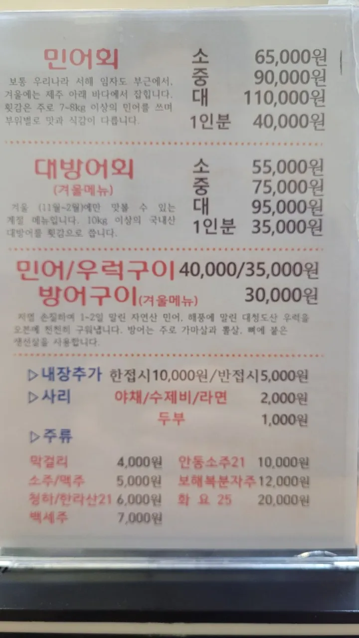 신선한 민어를 사용한 회로, 부드러운 식감과 고소한 맛이 특징입니다.