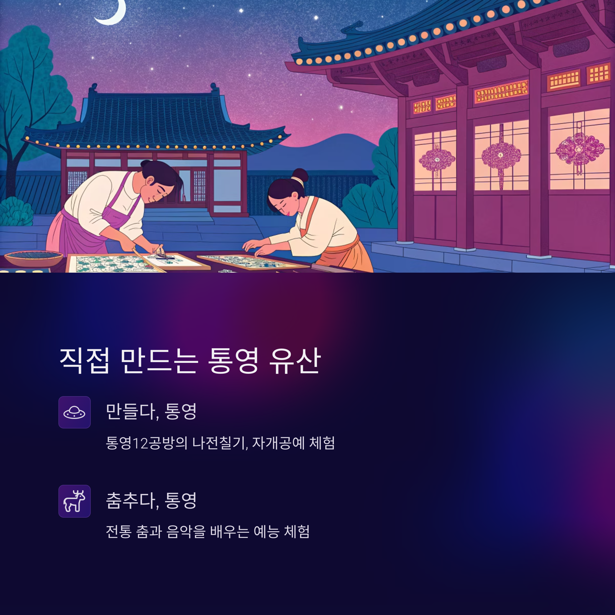 통영 12 공방에서 운영하는 프로그램으로, 나전칠기, 자개공예 등 무형유산을 배우고 나만의 작품을 만들어보는 소중한 시간이 됩니다.