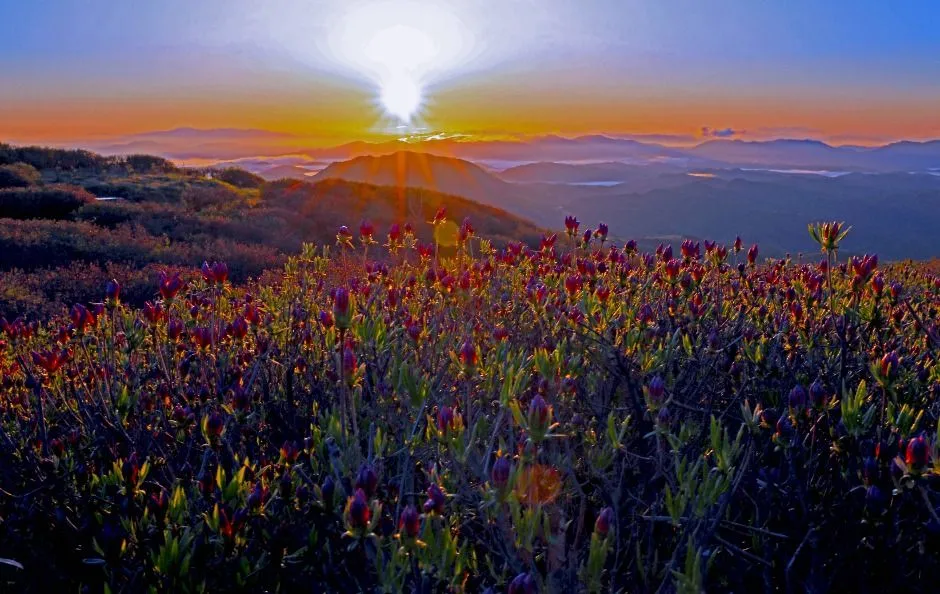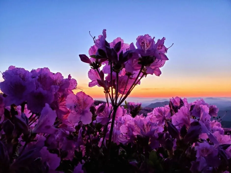해발 800m의 광활한 평원에 펼쳐진 철쭉은 시야 방해 없는 촬영이 가능하며, 일출과 철쭉이 함께 담기는 황금 시간대도 존재합니다.
