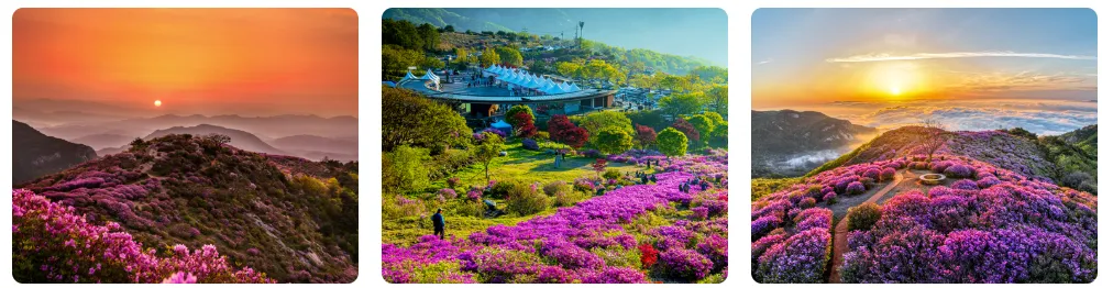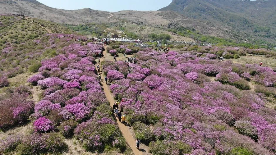 30헥타르에 이르는 드넓은 철쭉밭은 시야 가득 봄의 절정을 느낄 수 있는 풍경을 선사합니다.